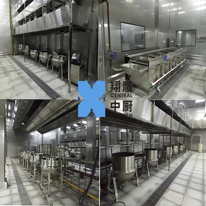 设备安装现场图片:自动熬煮线、蒸汽夹层锅、蒸汽漂烫锅、六斗清洗漂烫机