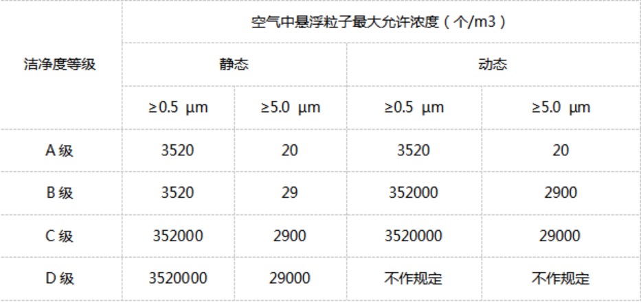 空气洁净度级别以每立方米空气中某些粒径微粒的最大允许微粒数来确定,它是评价空气洁净环境的核心指标。常用的有1SO标准和GMP标准: